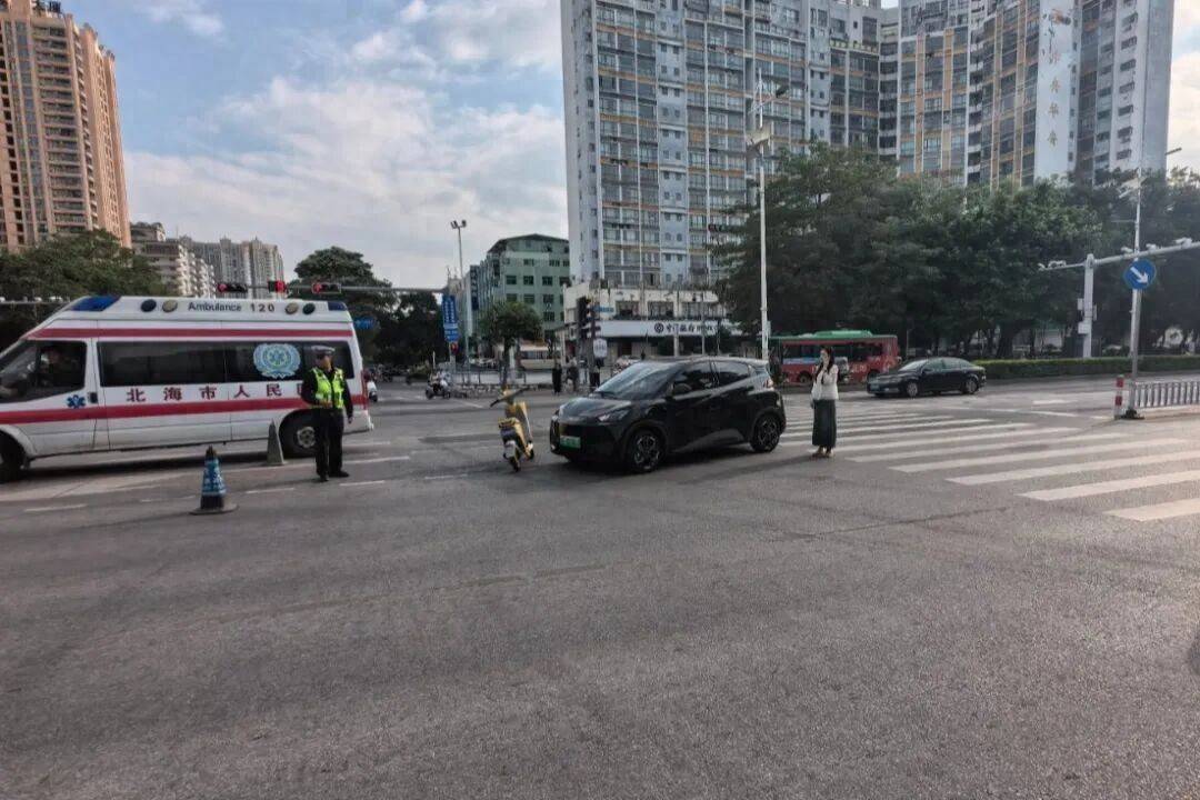 近日,北海市公安局交通贬责支队接到报警称,在北海大路广东路口一辆电动自行车与小车发生交通事故,有东说念主受伤。接警后,海城大队值班民警速即出警前往交通事故现场,对事故现场进行了仔细勘查和调取视频监控并对事故当事东说念主进行了谈论,规复了事故发生的经由。
