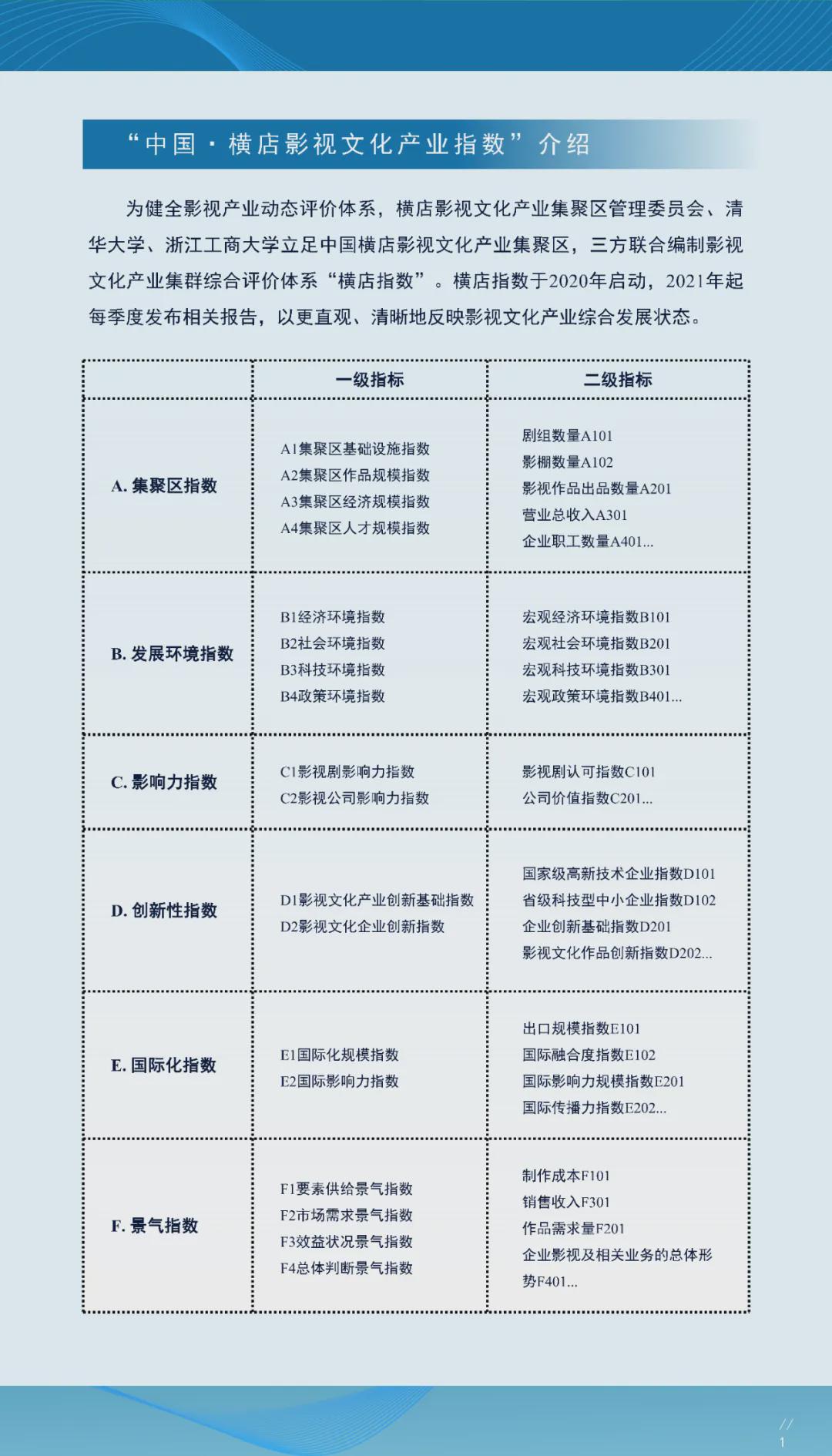 横店影视文化产业汇聚区是国内首个文化类产业汇聚区。为健全影视产业动态评价体系,横店影视文化产业汇聚区科罚委员会、清华大学、浙江工商大学三方相聚研发编制了“横店指数”,下设18个一级谋略、52个二级谋略,对横店影视文化产业的发展进行不雅察和参谋,并从2021年起每季度发布相干陈说,试图通过“横店指数”这种更直不雅、明晰地反馈影视文化产业轮廓发展景象。本陈说由网易传媒科技参谋院相聚横店指数课题组共同发布。