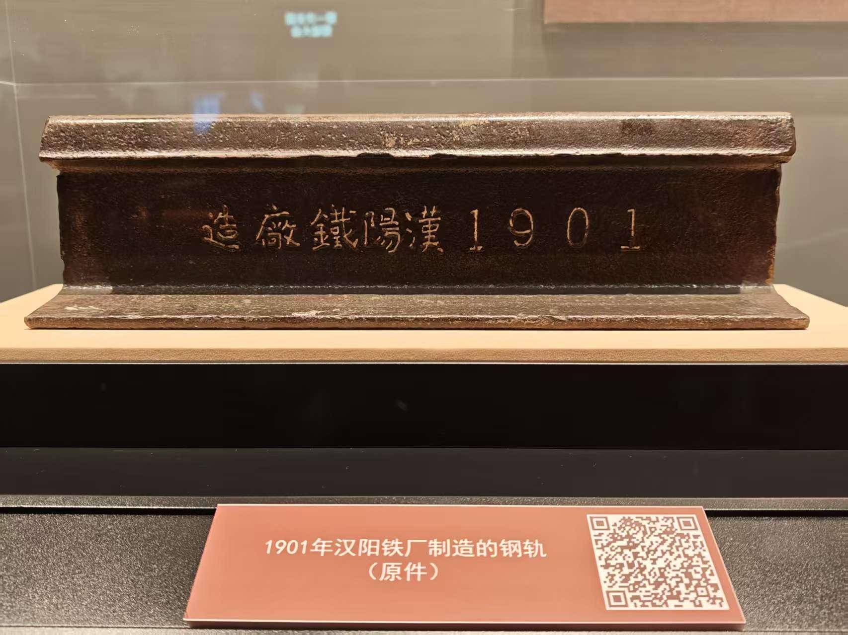 1901年汉阳铁厂制造的钢轨(原件)。东谈主民网 肖聪聪摄
