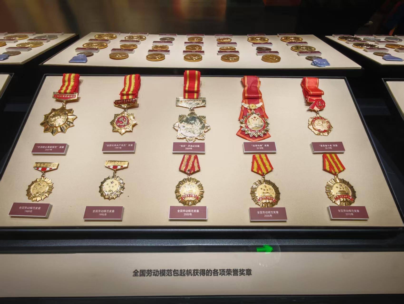 宇宙功绩尺度包起帆赢得的各项荣誉奖章。东谈主民网 肖聪聪摄